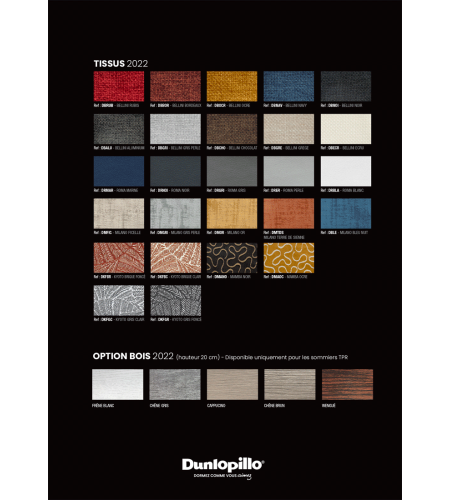 Tête de lit capitonnée de Dunlopillo hauteur 122 cm réalisable dans toutes largeurs du 90 au 200 cm et 16 coloris.